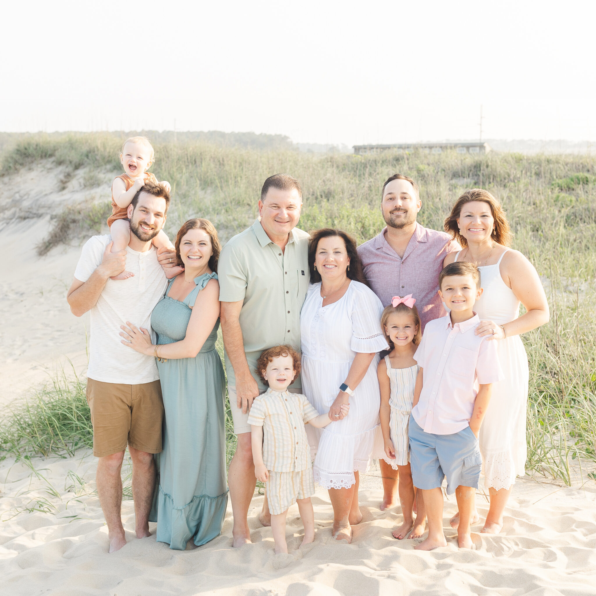 For this reason, sessions take place at Coquina Beach in South Nags Head, and are scheduled around sunset. We typically allocate around an hour to capture your family, and love photographing family groups of all sizes as well as high school seniors, maternity, and couples.