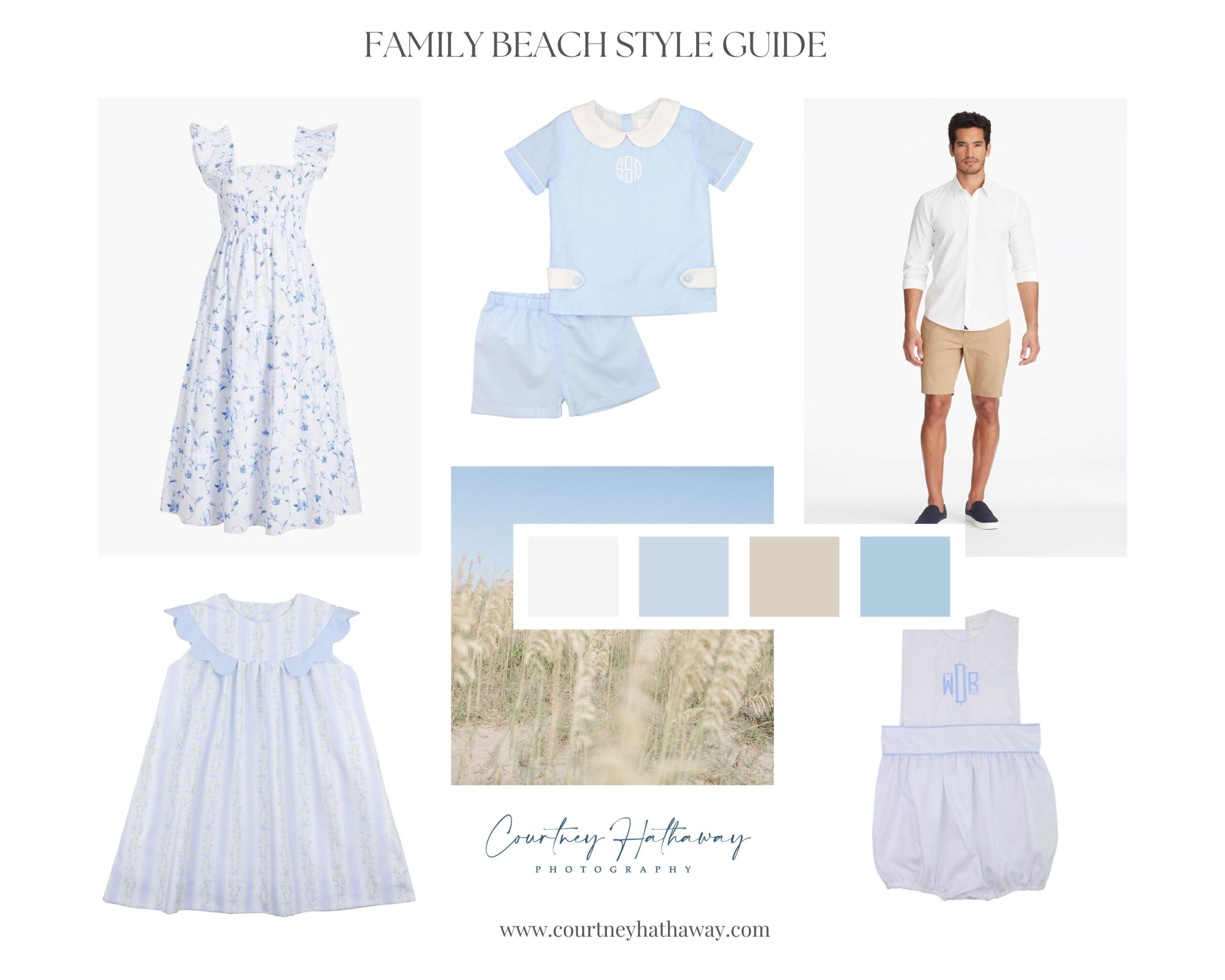 These colors reflect the natural beauty of the beach and keep the focus on your family rather than busy patterns or overly bold tones. My editing style is light & airy, and lends itself best to choosing colors that area also light and soft. Think lighter shades of blues, creams, tans, greens, and pale pinks.